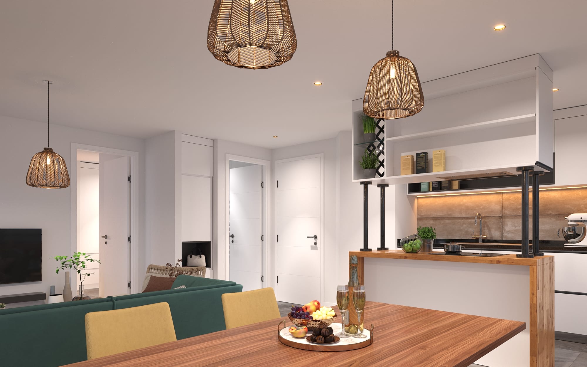 Apartamenty są oddawane „pod klucz”, czyli w pełni wykończone. Przy inwestycjach w budowie można wybrać materiały, drzwi, kolory kuchni i inne elementy aranżacji. Standard obejmuje m.in. malowane ściany, podłogi z gresu lub paneli, drzwi antywłamaniowe, gniazdka, wyposażone łazienki (WC, prysznic/wanna, umywalka z szafką, lustro), zabudowę kuchenną z „cichym domykiem”, szafy wnękowe oraz oświetlenie zewnętrzne. Tarasy i balkony wyłożone są płytkami lub kamieniem. Gotowe do zamieszkania.