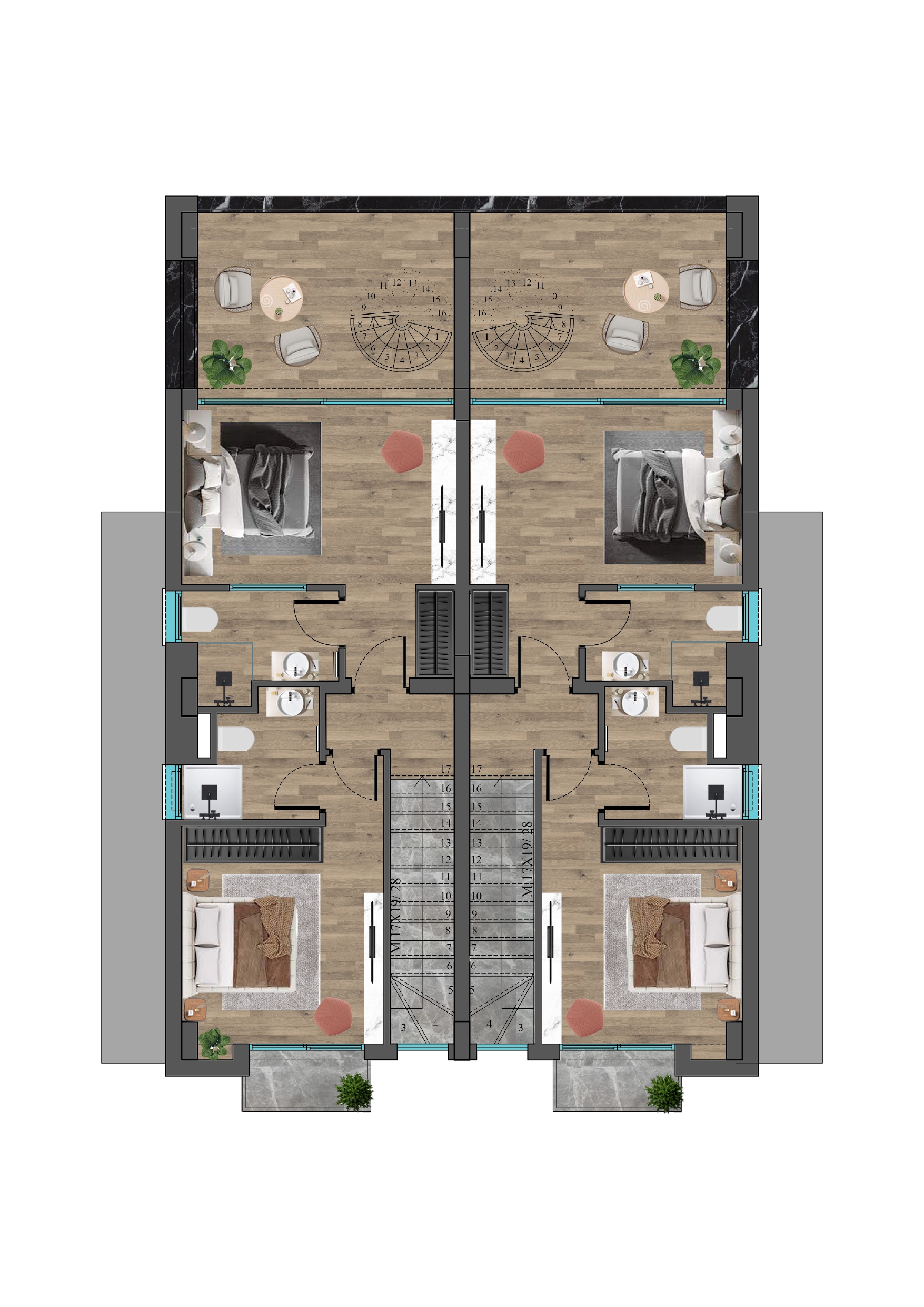 Wille są oddawane „pod klucz”, czyli w pełni wykończone. Przy inwestycjach w budowie można wybrać materiały, drzwi, kolory kuchni i inne elementy aranżacji. Standard obejmuje m.in. malowane ściany, podłogi z gresu lub paneli, drzwi antywłamaniowe, gniazdka, wyposażone łazienki (WC, prysznic/wanna, umywalka z szafką, lustro), zabudowę kuchenną z „cichym domykiem”, szafy wnękowe oraz oświetlenie zewnętrzne. Tarasy i balkony wyłożone są płytkami lub kamieniem. Gotowe do zamieszkania.
